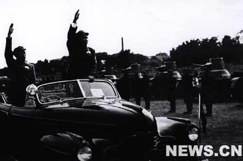 這次閱兵,按閱兵式和分列式兩類程序進行,閱兵式在靜止狀態(tài)下進行,分列式在行進狀態(tài)下進行。閱兵式歷時兩個半小時。開國大典閱兵,以步兵、騎兵為主,有火炮119門,坦克和裝甲車152輛,汽車222輛,飛機17架,軍馬2344匹。海軍只有一個方隊,空軍只有17架飛機,1.64萬名受閱官兵中,技術兵只占3%。那時,中國人民解放軍絕大多數(shù)是步兵。整個閱兵歷時兩個半小時。