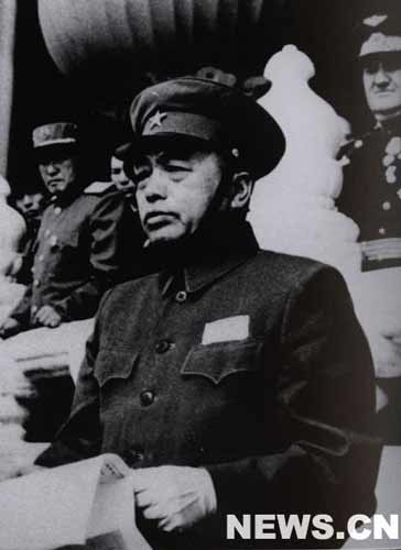 在檢閱臺上的還有國防委員會副主席劉伯承、徐向前、聶榮臻、葉劍英、程潛、張治中、傅作義、龍?jiān)啤?