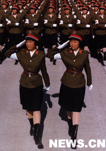 英姿颯爽的女衛(wèi)生兵是建國(guó)以來(lái)第一次出現(xiàn)在閱兵序列中。第七排的排頭兵是朝鮮族女戰(zhàn)士康輝。1957年國(guó)慶節(jié),她的父親參加了首都的閱兵式,F(xiàn)在,她又成為第一批受閱女兵的一員,真是幸福的兩代人。觀禮臺(tái)上,來(lái)自邊疆的少數(shù)民族觀禮代表們知道女衛(wèi)生兵方隊(duì)中還有滿、蒙古、回、壯、彝、鄂溫克、達(dá)斡爾族姐妹,高興地向女兵方隊(duì)鼓掌、致意。