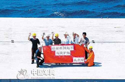 當(dāng)?shù)貢r(shí)間4月21日6時(shí),海軍第二批護(hù)航編隊(duì)開(kāi)始中國(guó)海軍在亞丁灣、索馬里海域的第44批護(hù)航。接受護(hù)航的船舶通過(guò)不同形式表達(dá)對(duì)偉大祖國(guó)和護(hù)航海軍的感謝。本報(bào)記者夏洪平、通訊員駱源攝影報(bào)道