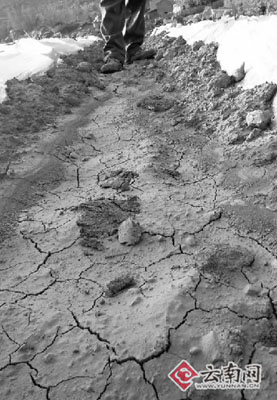 據(jù)介紹,干壩村所處海拔超過1300米,由于缺水易干旱得名。羊皮寨小組有一個水源點,不過進入3月后,水變得越來越小了,就連那里61戶人家的人畜飲水都不能保證,更不奢望有水澆灌烤煙地了。有村民告訴記者,不得已,他們開始用牛馬,或者用摩托車到很遠的地方去馱水!拔覀円患胰艘惶煲100公斤左右的水,洗臉腳的水要節(jié)約下來煮豬食,有時就連人的尿液也要節(jié)約下來喂牲畜!币幻迕裾f。