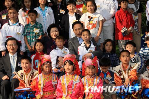 不一會兒,李明博總統(tǒng)攜夫人金潤玉一起走來,孩子們迎上前去。李明博一眼就認出了他在大地震發(fā)生后不久訪問四川時曾抱過的魏月濠小朋友。李明博撫摸著魏月濠的頭,親切地說:“長大了不少。”