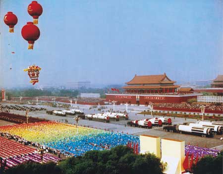 我當時位于導彈方陣第一列靠近天安門城樓的一面。行注目禮時,我看到檢閱臺、觀禮臺上一片歡呼。一看到導彈車,在觀禮臺上的中國女排姑娘們用力把鮮花向我們隊伍拋過來。家喻戶曉的中國女排都這樣為我們吶喊,作為第二炮兵方陣中的一員,真像被一股幸福的電流擊了一下,我當時感覺真是太自豪了!