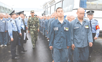 圖為在押服刑人員排列有序地遷入監(jiān)獄新址!×貉詳z