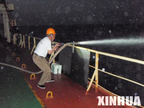 新華軍事特派記者黃書(shū)波第一時(shí)間采訪了"晶瑩海"輪船長(zhǎng)闞福軍、政委汪維圣和部分參與抗擊海盜的船員,為新華網(wǎng)網(wǎng)友還原了"晶瑩海"輪在我護(hù)航編隊(duì)“黃山”艦接護(hù)下抗擊海盜的全過(guò)程。