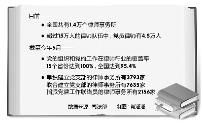 黨的十七大對(duì)包括律師行業(yè)在內(nèi)的新社會(huì)組織黨建工作提出明確要求。2008年,中央組織部和司法部聯(lián)合發(fā)文,提出2009年6月實(shí)現(xiàn)黨的組織和黨的工作在律師行業(yè)全覆蓋的目標(biāo)。