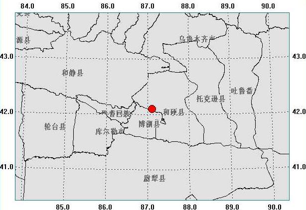 據(jù)測(cè)定,地震震中位于北緯 42.1°,東經(jīng) 87.1°。目前尚未收到有關(guān)人員傷亡及財(cái)產(chǎn)損失的報(bào)告。