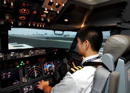 我們的訓(xùn)練都是在模擬機(jī)上完成的。主要是針對(duì)起飛時(shí)一臺(tái)發(fā)動(dòng)機(jī)失效、著火及飛脫,空中的部分操縱系統(tǒng)故障,高空的發(fā)動(dòng)機(jī)故障,座艙急劇釋壓,著陸時(shí)部分起落架不能放下等。比如遇上湍流,飛行員首先會(huì)把飛機(jī)速度降低到穿越顛簸區(qū)域的速度,將發(fā)動(dòng)機(jī)的“點(diǎn)火開關(guān)”扳到“連續(xù)點(diǎn)火”,防止發(fā)動(dòng)機(jī)熄火。有時(shí)還需要斷開“自動(dòng)駕駛儀”人工飛行。