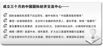社科院、國研中心等機(jī)構(gòu),有的長于經(jīng)濟(jì)理論研究,有的長于國內(nèi)經(jīng)濟(jì)研究,而國經(jīng)中心更注重國際經(jīng)濟(jì),并結(jié)合國內(nèi)經(jīng)濟(jì)走向展開對策性研究,把握火候報送中央高層,用曾培炎理事長的話講,是發(fā)揮“臨門一腳”的作用。在運(yùn)作上是開放式,既堅持研究的原創(chuàng)性,又不斷吸收其他中外研究機(jī)構(gòu)有實(shí)用價值的成果。比如中心成立以來已有20個課題在網(wǎng)上公開招標(biāo)。將于6月下旬啟動的“經(jīng)濟(jì)每月談”,請年輕人主講,向全社會開放。