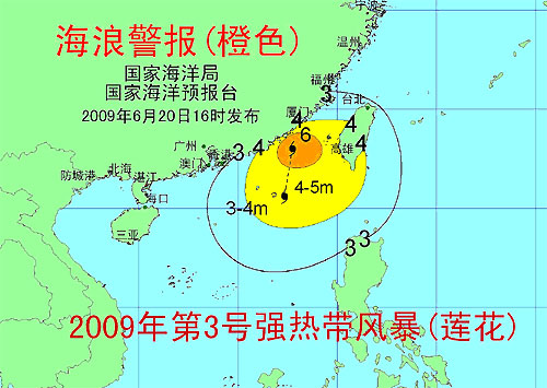 消息稱,受今年第3號強(qiáng)熱帶風(fēng)暴“蓮花”的影響,預(yù)計(jì)20日夜間到21日白天,南海東北部、臺灣海峽南部將出現(xiàn)5到6米的巨浪到狂浪區(qū);臺灣海峽北部將出現(xiàn)3到4米的大浪到巨浪區(qū)。廣東省東部、福建省南部沿海將出現(xiàn)3.5到4.5米的大浪到巨浪。