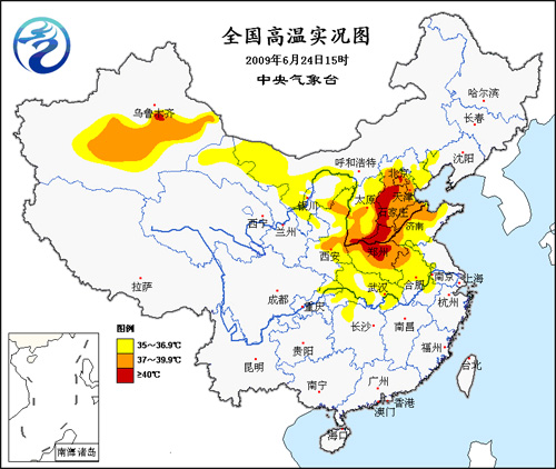 中新網(wǎng)6月24日電 據(jù)中國(guó)氣象局網(wǎng)站消息,中國(guó)華北、黃淮等地今日出現(xiàn)今年首次大范圍高溫天氣,石家莊、鄭州的最高氣溫甚至超過(guò)41℃。