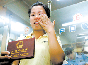 緊緊握著剛剛從戶籍民警手中遞來(lái)的《上海市居民戶口簿》,閘環(huán)靈石環(huán)境衛(wèi)生工程公司管理員、徐州來(lái)滬農(nóng)民工李影抑制不住喜悅的淚水,“從來(lái)沒(méi)有想過(guò)有機(jī)會(huì)落戶上海,夢(mèng)想成真的滋味,真好!”自《持有〈上海市居住證〉人員申辦本市常住戶口試行辦法》及實(shí)施細(xì)則公布后,李影等去年被評(píng)為全國(guó)優(yōu)秀農(nóng)民工的一批務(wù)工人員因符合“居轉(zhuǎn)戶”的激勵(lì)條件,成為首批落戶上海的幸運(yùn)者。