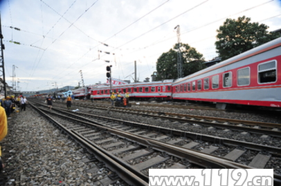 中新網(wǎng)6月29日電 京廣線湖南郴州火車站29日凌晨發(fā)生客車側(cè)面沖突事故,目前已造成3人死亡,63人受傷,其中6人重傷。公安部消防局網(wǎng)站引述湖南消防總隊(duì)的消息稱,截止當(dāng)日7時(shí)整,湖南消防總隊(duì)參戰(zhàn)官兵共搶救被困人員15人,疏散旅客200余人。