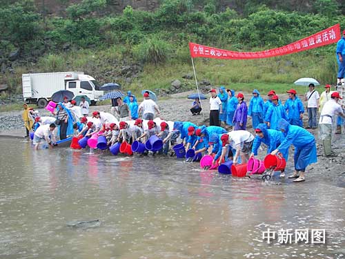 中新網(wǎng)宜昌6月30日電(記者 郭曉瑩)三峽開發(fā)總公司中華鱘研究所29日在長江宜昌江段(江南櫻桃園碼頭)舉行了2009年度第二次中華鱘放流活動,這也是該所第49次放流中華鱘。