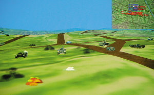 “我們正在組織官兵利用戰(zhàn)術(shù)對(duì)抗模擬訓(xùn)練系統(tǒng)開(kāi)展訓(xùn)練!甭瞄L(zhǎng)趙立榮告訴記者。為改進(jìn)裝甲分隊(duì)?wèi)?zhàn)術(shù)訓(xùn)練手段,提高按綱施訓(xùn)質(zhì)量,該旅與石家莊機(jī)械化步兵學(xué)院聯(lián)合開(kāi)發(fā)了全軍首家裝甲步兵戰(zhàn)術(shù)對(duì)抗模擬訓(xùn)練系統(tǒng)!霸撥浖到y(tǒng)是以構(gòu)建1∶1000的戰(zhàn)場(chǎng)地形環(huán)境和車(chē)輛、人員模型為基礎(chǔ),所有參訓(xùn)人員在三維虛擬戰(zhàn)場(chǎng)上訓(xùn)練,其所聽(tīng)、所見(jiàn)均與實(shí)車(chē)在現(xiàn)地作戰(zhàn)時(shí)一樣!