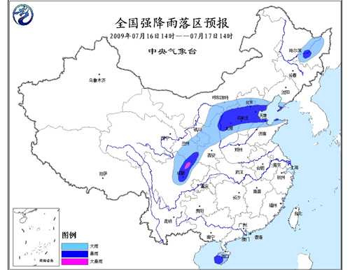 中新網(wǎng)7月16日電 據(jù)中國氣象局網(wǎng)站消息,中央氣象臺(tái)16日發(fā)布暴雨橙色警報(bào):預(yù)計(jì),今天下午到明天中午,四川盆地西部、甘肅東南部、陜西西南部和東北部、山西中北部、河北中部、北京南部、天津、遼東半島南部、山東東北部以及黑龍江中部、海南西部等地的部分地區(qū)有暴雨,其中,四川盆地西北部局部地區(qū)有大暴雨。上述部分地區(qū)并伴有短時(shí)雷雨大風(fēng)等強(qiáng)對流天氣。