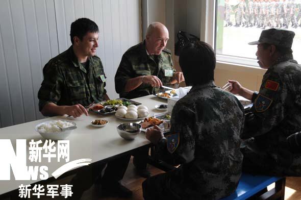 新華軍事:之前你為網(wǎng)友介紹過(guò)中方的飲食,按規(guī)定是六菜一湯,比較豐盛。這幾天有沒(méi)有機(jī)會(huì)吃到俄軍的飯菜?他們的飲食狀況是怎樣的?