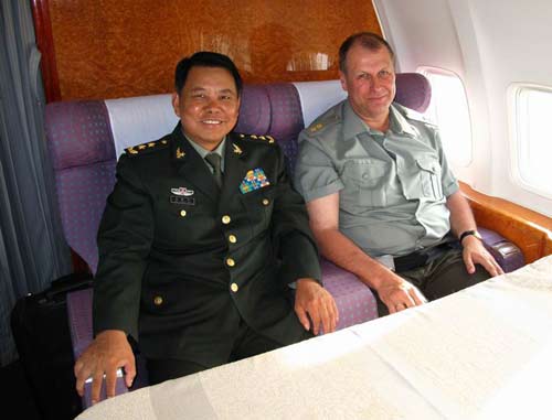 參加“和平使命-2009”中俄聯(lián)合反恐軍事演習的中俄雙方導演部、戰(zhàn)役指揮部部分人員及媒體記者共37人于當?shù)貢r間7月20日20點(北京時間17點)抵達俄羅斯遠東軍區(qū)司令部所在地哈巴羅夫斯克,參加7月22日舉行的“和平使命-2009”中俄聯(lián)合軍演開始儀式。