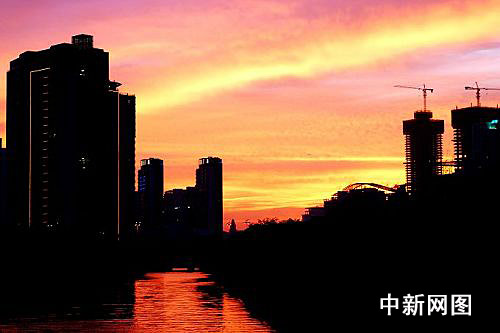 昨天傍晚,眾多市民在橫跨護(hù)城河的南園橋上觀賞火燒云景觀時(shí),發(fā)出聲聲贊嘆。市民王先生有點(diǎn)自得的對(duì)記者說,他根據(jù)白天的云層情況,判斷出當(dāng)天很可能還會(huì)出現(xiàn)火燒云,所以早早的守候在這里觀看,果真如愿看到了完整的火燒云變化情況。