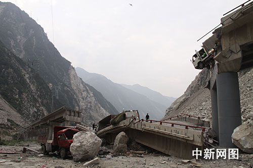 7月25日凌晨4:10左右,由于連日大雨沖擊,汶川縣國(guó)道213線都汶路44KM+200處,因山體滑坡造成徹底關(guān)大橋橋墩被垮塌的巨石砸斷。