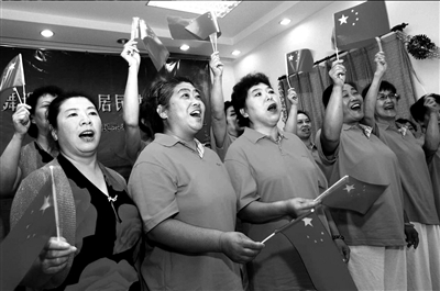 昨天上午9點(diǎn)30分左右,(北京市)西城區(qū)大院社區(qū)居民徐平自編自導(dǎo)了一場(chǎng)歌舞表演慶祝國慶,其中的手語舞蹈融匯多種舞蹈元素。大院社區(qū)居委會(huì)書記馮寶良稱,希望通過這場(chǎng)歌舞表演喚起居民的民族自豪感。