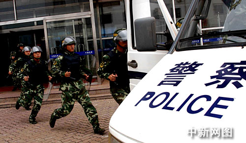 圖為河北邊防部隊官兵在演練中快速追捕“恐怖分子”。作 者:王小雪
