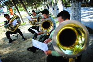 6月進入聯(lián)合軍樂團駐地后,逄博和父親都住在一棟樓,但是分走不同的門洞。逄博說,他很少去找父親,也從沒有向父親求助過。封閉集訓3個多月來,逄博總是和隊友一起埋頭苦練。早上6點起床,除了吃飯午休,一直練到晚上七八點,然后還要背曲譜。