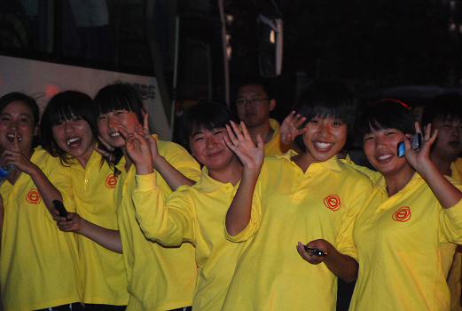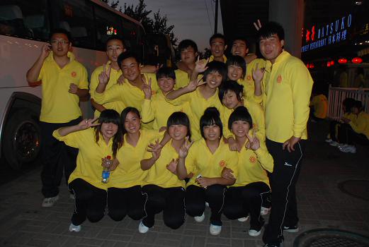 一陣快樂的笑聲引起了記者的注意,原來是一群年輕人在相互用手機(jī)拍照留念。他們是來自北京市汽車工業(yè)高級(jí)技術(shù)學(xué)校的25名學(xué)生。參加大型活動(dòng)對(duì)他們來說一點(diǎn)都不陌生,因?yàn)樗麄兘?jīng)歷過今年8月8日在“鳥巢”及奧林匹克景觀大道舉行的“三萬人演太極破世界紀(jì)錄”的活動(dòng)!8月8日的活動(dòng)結(jié)束后,我們就開始準(zhǔn)備國慶舞蹈了。大家用了3、4天就學(xué)會(huì)了!辈贿^接下來,同學(xué)們放棄暑假,用了整整一個(gè)月來精益求精。這些90后、80后的大孩子們開朗熱情,對(duì)于第一次實(shí)地演練檢驗(yàn)一個(gè)多月來的努力成果顯得信心十足興奮不已,他們說,雖然在室外頂著日頭訓(xùn)練時(shí)挺辛苦,但是大家都覺得“特別自豪,特別快樂”,因?yàn)椤拔覀兡艽肀本、代表中國向全世界展示我們國家的繁榮昌盛,這是非常難得的經(jīng)歷”。(記者 劉莉)