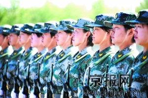 在女民兵方隊,隊員們訓(xùn)練歸來最愛開的一個玩笑,便是撩開“劉海兒”,欣賞各自腦門上那道黑白分明皮膚,互相打趣:“咱們可以給美白護(hù)膚產(chǎn)品作‘活廣告了’。”