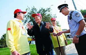 “奧運(yùn)會(huì)舉行時(shí),傅老就是治安志愿者!蔽鞑菔猩鐓^(qū)民警趙亮說(shuō),今年一聽(tīng)說(shuō)國(guó)慶安保也需要志愿者,傅漪泉老人一早兒就報(bào)名參加了。為了照顧老人身體,民警都沒(méi)給他固定崗位,但“老人常主動(dòng)在胡同里轉(zhuǎn)!壁w亮還表示,去年除夕傅漪泉老人夜里12點(diǎn)出來(lái)巡邏,發(fā)現(xiàn)西草市社區(qū)148號(hào)附近的堆積物上有火苗,趕緊回去告訴家人。家人立即通知趙亮處理,避免了一場(chǎng)火情。