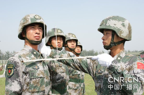“向右擺頭45度,帽檐前緣與眉同高!薄皟赡_分開60度,向前踢腿時(shí),腳掌距離地面60厘米!薄跋蛴铱吹降卓词裁吹胤健边@組看起來枯燥乏味的數(shù)字 、簡單易學(xué)的動(dòng)作,卻并不容易精確掌握做到,并直接影響著閱兵訓(xùn)練的全局(方隊(duì)的整齊一致)。