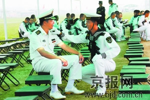 在水兵方隊(duì),何健和何煒是一對鮮為人知的父子。父親何健先后參加了國慶35周年、國慶50周年國慶首都閱兵,加上這次以水兵方隊(duì)政委的身份參加新中國成立60周年國慶首都閱兵,他已經(jīng)是第三次來到閱兵村。兒子何煒去年底參軍入伍并被挑選為水兵方隊(duì)受閱隊(duì)員。9歲時(shí),何煒因爸爸參加受閱任務(wù)無暇照顧自己,還經(jīng)?拗鴮寢屨f“爸爸是不是不要我了”。10年后,這個(gè)非軍校不上的“犟小伙”毅然放棄上地方大學(xué)的機(jī)會,不顧媽媽的勸說,參軍來到部隊(duì)。