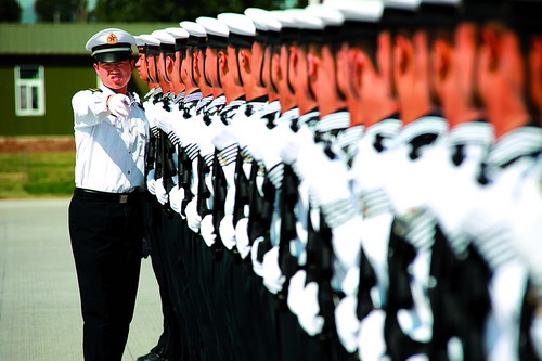 淅淅瀝瀝的小雨,難掩受閱戰(zhàn)士們的高昂熱情。