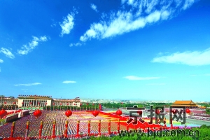不經(jīng)歷風(fēng)雨怎能見彩虹!似乎是對(duì)偉大祖國(guó)60年來走過的不平凡道路的真實(shí)寫照,慶典前的天安門廣場(chǎng)在經(jīng)歷電閃雷鳴后終于撥云見日,迎來湛藍(lán)的天空和燦爛的陽(yáng)光。今天上午10時(shí),廣場(chǎng)上空天高云淡,日朗風(fēng)清,慶典典禮在良好的天氣條件下隆重舉行。