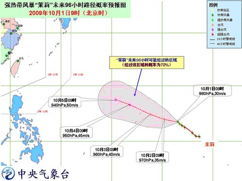 預(yù)計,“茉莉”將以每小時15~20公里的速度向西偏北方向移動, 強度繼續(xù)加強,將于1日晚些時候加強為臺風(fēng),2日有可能加強為強臺風(fēng)。