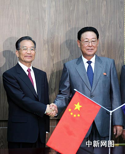 中共中央政治局常委、國務院總理溫家寶四日抵達平壤進行正式友好訪問,他當天在平壤萬壽臺議事堂同朝鮮總理金英日舉行了會談。隨后兩國總理一同出席了有關(guān)文件的簽字儀式。