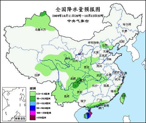 11日20時至12日20時,新疆北部、西藏東北部、青海東部和南部等地有小到中雨(雪)或雨夾雪;華北北部和西南部、西北地區(qū)東南部、江漢、江南西北部、西南地區(qū)大部、廣西東南部、廣東南部、海南、福建東部、臺灣等地有小到中雨或陣雨,其中,廣東西南部、海南大部等地有大到暴雨,海南東部的部分地區(qū)有大暴雨。甘肅東部、陜西北部、華北中南部、黃淮西部、江淮大部、江南大部等地有輕霧,其中甘肅東部、山西南部有霧。新疆北部、內(nèi)蒙古中東部、東北北部有4~6級偏北風。受“芭瑪”和冷空氣的共同影響,南海北部和中部海域、北部灣海域?qū)⒂?-8級大風,部分海域的陣風可達9-10級。另外,東海南部海域、臺灣海峽、臺灣以東洋面和以南海域?qū)⒂?-7級、陣風8級的東北風。