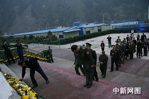 經(jīng)過簡單的接洽,武官們直接來到汶川縣漩口中學(xué)地震遺址,用軍禮向汶川大地震中的遇難者和英勇犧牲的烈士用表示崇高的敬意和深深的哀悼。在參觀遺址的過程中,軍官們紛紛用相機記錄著漩口中學(xué)的原貌,談?wù)撝氪?zāi)后恢復(fù)重建的驚人速度。其中一位武官用還算流利的普通話說:“汶川的映秀非常漂亮!建設(shè)得太好、太快了!”