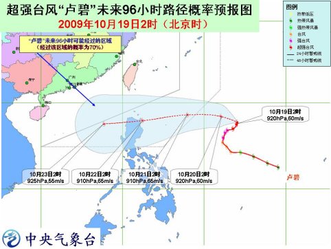 預(yù)計(jì),“盧碧”將先以每小時(shí)5公里左右的速度緩慢向偏北方向移動(dòng),19日中午以后將逐漸轉(zhuǎn)向西偏北方向移動(dòng),移速逐漸加快,強(qiáng)度還將有所增強(qiáng)。受“盧碧”和冷空氣的共同影響,19日白天到夜間,臺(tái)灣海峽、臺(tái)灣以東洋面、巴士海峽、巴林塘海峽、臺(tái)灣沿海、福建沿海的風(fēng)力將逐漸加大到7-8級(jí),部分海域和地區(qū)陣風(fēng)可達(dá)9-10級(jí)。