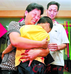 昨日,好消息終于傳來,經(jīng)過DNA數(shù)據(jù)對比,“寶貝尋家”中編號為16的孩子被證實(shí)為東莞高埗鎮(zhèn)菜販顧先生夫婦的親生兒子顧金龍,他成為60名兒童中第二位找到親生父母的男童。昨日下午1時多,5年多未見過親生兒子的顧先生夫婦一把抱過兒子,喜極而泣。悲喜交集的母親含淚向民警下跪致謝。