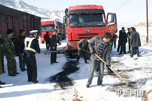 目前,307國(guó)道吳城薛公嶺段仍未通行。呂梁市市長(zhǎng)張九萍組織有關(guān)部門,全力在鏟除清理積雪積冰,并對(duì)被困在此間的司乘人員看望和安慰。