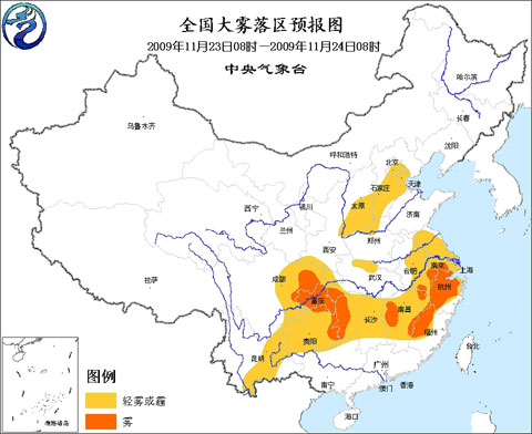 中央氣象臺23日06時(shí)繼續(xù)發(fā)布大霧預(yù)報(bào):