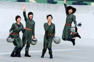 10月1日上午,盡管首都北京上空陽光明媚,但殲擊機女飛行員駐訓(xùn)的華北某機場,云底高500米、云頂高1200米,能見度只有1.3公里。這種情形下能不能按時起飛,既是意志的考驗,也是生死的考驗。她們以忠誠無畏的戰(zhàn)斗決心,迅速確定了長僚機組500米跟進(jìn)起飛集合方案,梯隊飛機56秒內(nèi)一次全部升空。梯隊飛到1200-1300米高度,一直在兩個云層的夾縫中飛行,直到通州上空氣象條件好轉(zhuǎn)后才穿出云層。到達(dá)天安門廣場上空時,面臨氣流較大、自重較輕的教練機嚴(yán)重顛簸的情況,姑娘們以良好的心理素質(zhì)和過硬的飛行技術(shù),保持了隊形和精度,秒米不差地通過人民英雄紀(jì)念碑上空。