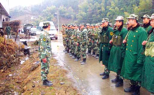 益陽(yáng)至安化有130多公里,道路交通不便,天氣寒冷。在克服諸多不便之后,部隊(duì)于17時(shí)30分開進(jìn)清塘鎮(zhèn)梧桐村。另一路由安化縣武警中隊(duì)派出的隊(duì)伍也趕到了現(xiàn)場(chǎng)。