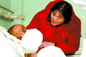 龍淑芳說(shuō),她找電話求助時(shí),聽到身后“噗”的一聲。她回頭看見丈夫身上燃起了大火,現(xiàn)場(chǎng)人員立即撲滅了火。龍淑芳和八旬的婆婆被人強(qiáng)制送上一輛面包車時(shí),席新柱還躺在大廳的地上,身上冒著煙氣。事后,席新柱被送往304醫(yī)院搶救。