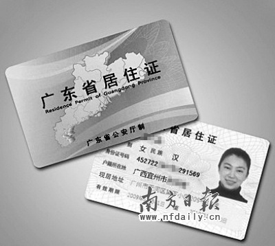廣東的居住證啥模樣?昨日上午,在廣東省、廣州市聯(lián)合舉辦的宣傳主題日活動現(xiàn)場,廣東居住證樣證悄然亮相。記者看到,居住證采用IC卡式證,集納了持有人的身份、居住地、就業(yè)、社保等多樣信息,并設(shè)計了可反復(fù)擦寫的區(qū)域,變更居住地址時無需換證。
