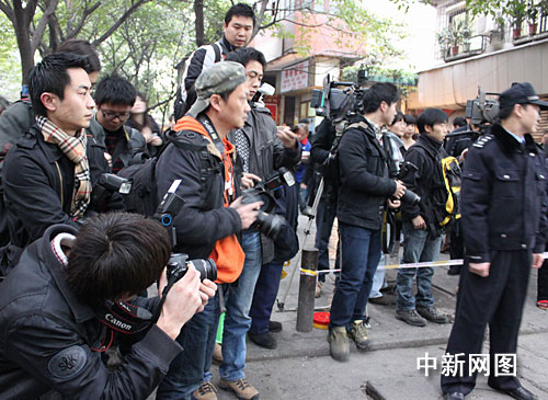 從早上7點開始,來自境內(nèi)外的各路記者便已經(jīng)在警戒頗嚴的重慶市第五中級人民法院門口守候,一些攝影愛好者也加入拍攝的隊伍,在很長一段時間里,在法庭外守候的記者多過圍觀的市民。記者看到,盡管法庭臨時增設(shè)加座,但也并非所有到場媒體能夠進去旁聽,不少沒有拿到旁聽證的媒體記者仍然早早的來到法院門口,希望能采訪到現(xiàn)場新聞和更快的得到一些消息。