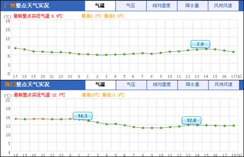 雖然時下已是“七九”,但在雨水的作用下,江淮、江南以及華南等地的氣溫卻并不高,一些地方的溫度較之前一天甚至還有降低。以廣州為例,16日14時廣州氣溫只有7.9℃,較前一天的9℃又下降了1.1℃。經(jīng)數(shù)據(jù)比對,該溫度也是廣州自去年立冬以來最冷的一天。之前廣州最冷的一天是1月7日,最高氣溫8.8℃。再拿?趤碚f,16日02點(diǎn)的氣溫為14.3℃,爾后逐漸下滑,到了當(dāng)日14時氣溫下降至12.8℃。濕度大,溫度低,以上地區(qū)的人體感覺該是相當(dāng)陰冷。