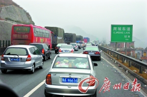 昨日上午,記者跟隨省交警部門(mén)到京珠高速北段看到,高速公路上的車流異常密集,大部分都是從湖南及以北省份開(kāi)往珠三角地區(qū)的小轎車和大客車,大貨車數(shù)量也有所上升。