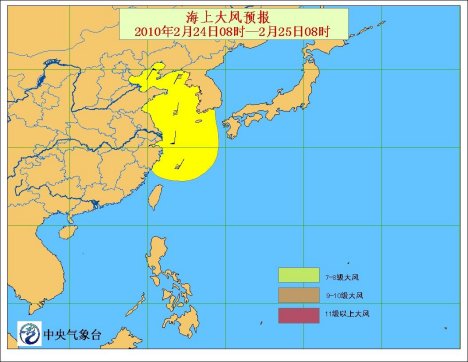 25日8時至26日8時,渤海、黃海北部和中部海域?qū)⒂?~7級、陣風8級的東北風。黃海南部海域?qū)⒂?-6級東北風;東海大部海域、臺灣海峽、臺灣以東洋面將有5~7級的西南風;其他海域天氣海況條件較好。